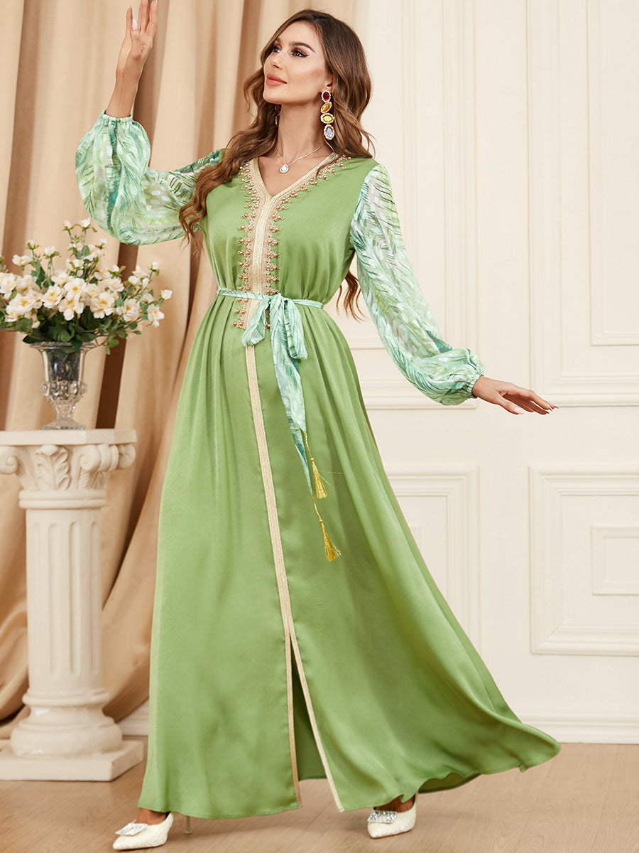 Women's Long Sleeve Pale Maxi Dress with Tassels