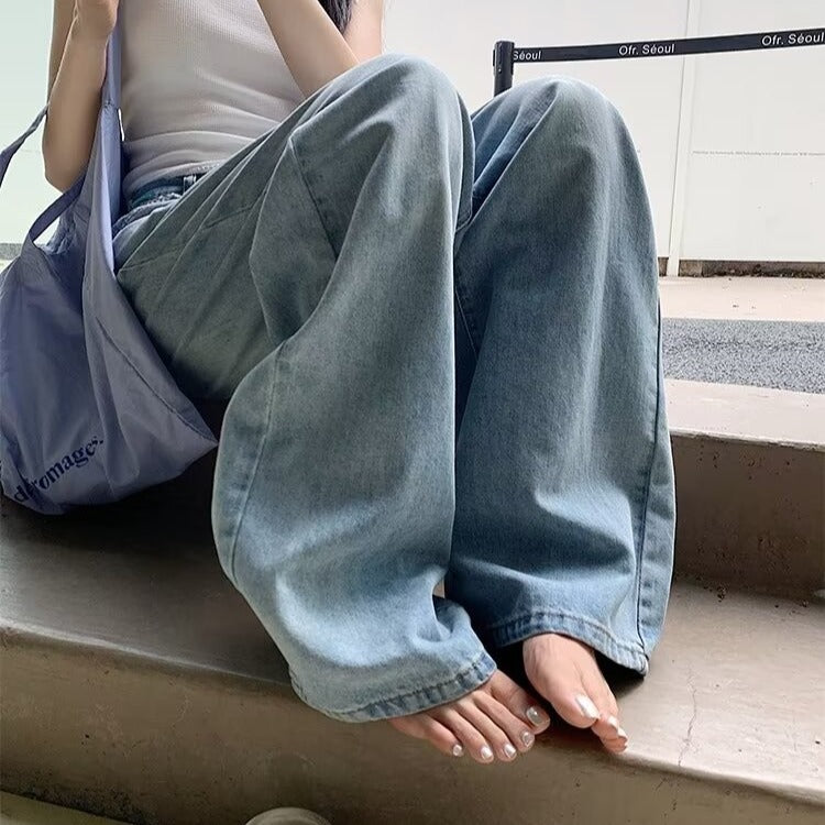 Jeans berkobar kecil yang berukuran besar dengan ukuran tinggi dengan santai pas