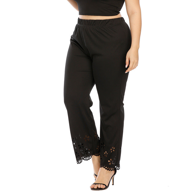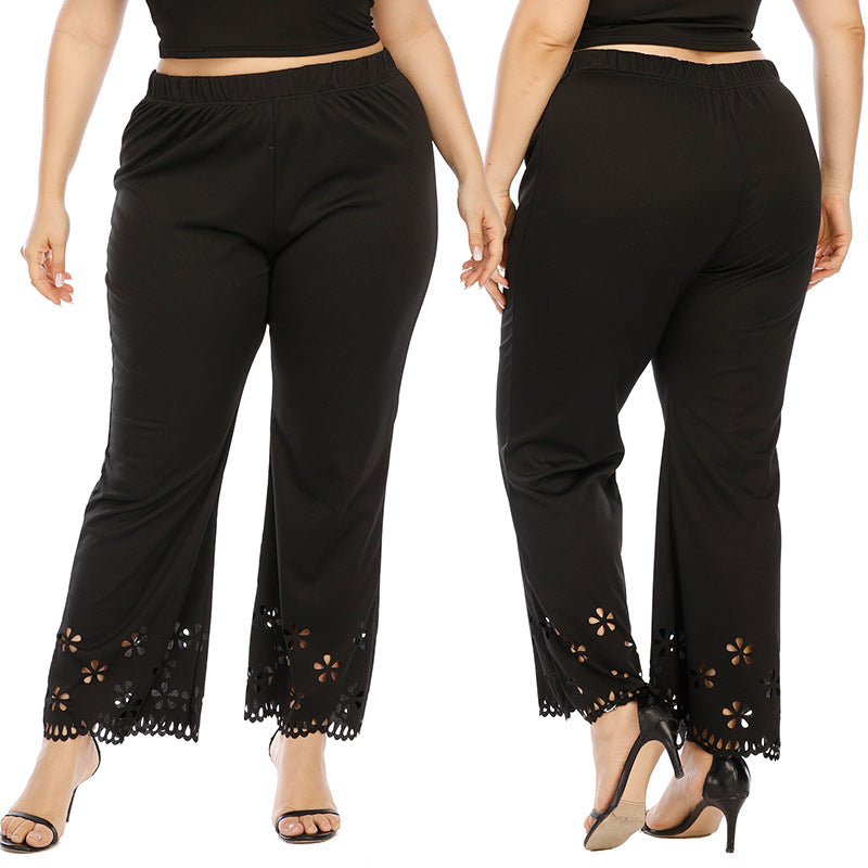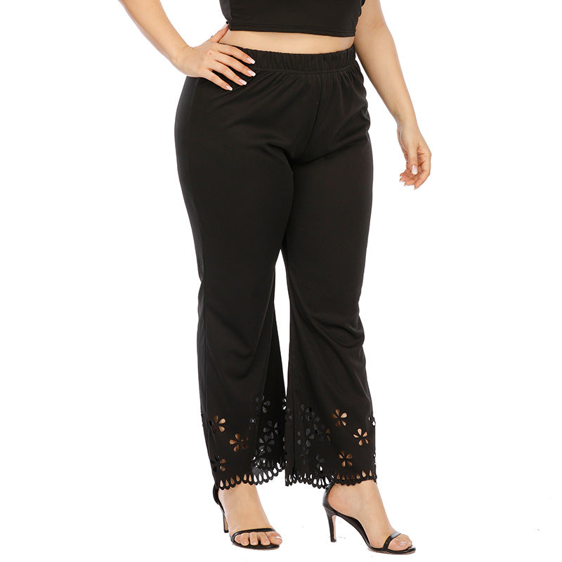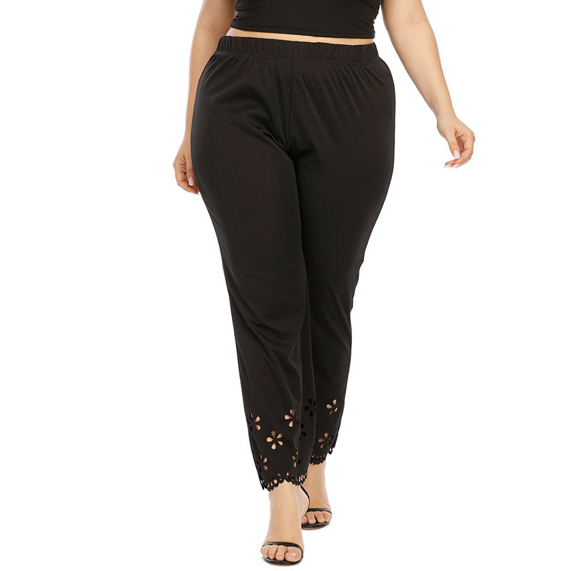 Women's High Waist Elastic Band Pants with Floral Cutouts