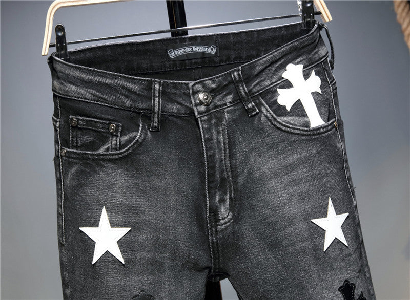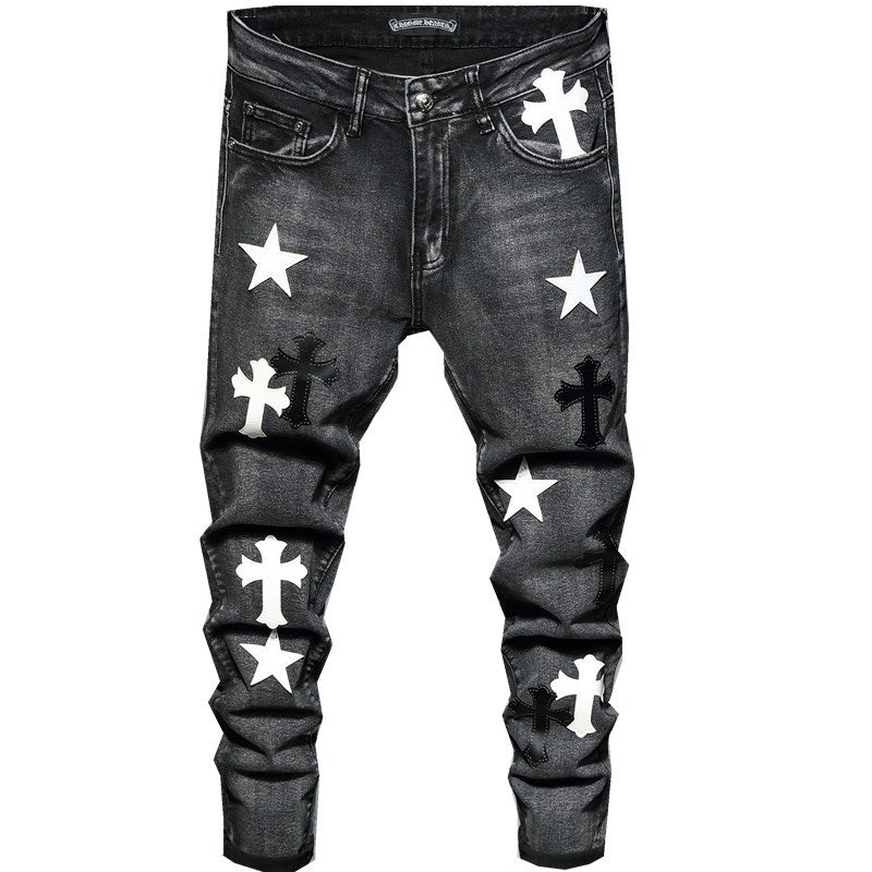 Druk je gewaagde persoonlijkheid uit in de slungelige skinny jeans van de mannen met een mix van witte en zwarte kruisen en sterren om jezelf te laten opvallen.