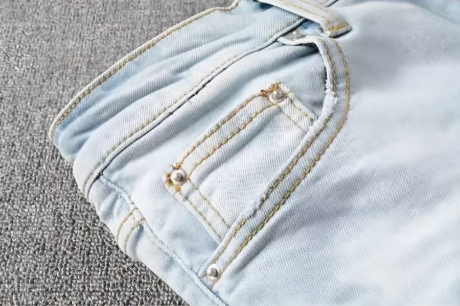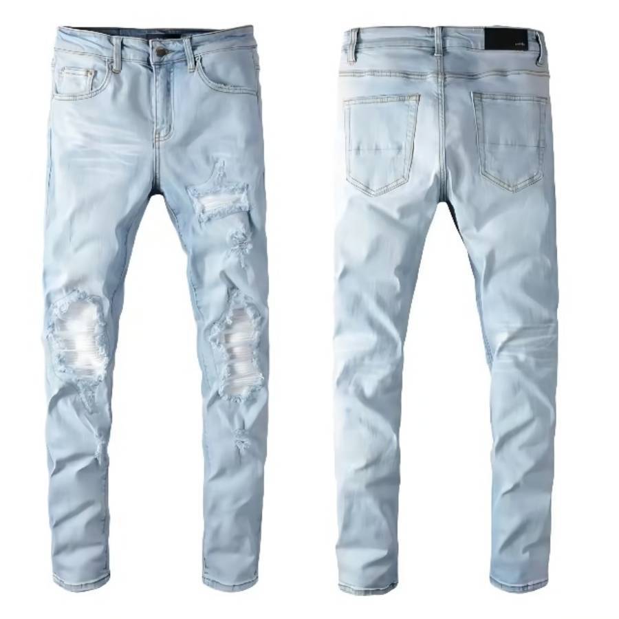 Enjoy the versatility and style of the Men’s Straight Leg Skinny Jeans with Rips in your closet. These jeans come in a light blue color that works well with any top.