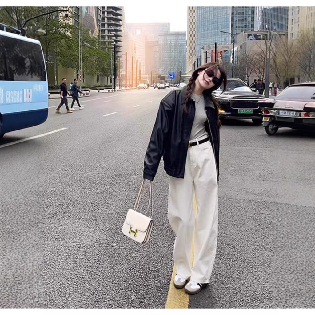 Jeans de perna larga branca e nítida com apelo feminino relaxado